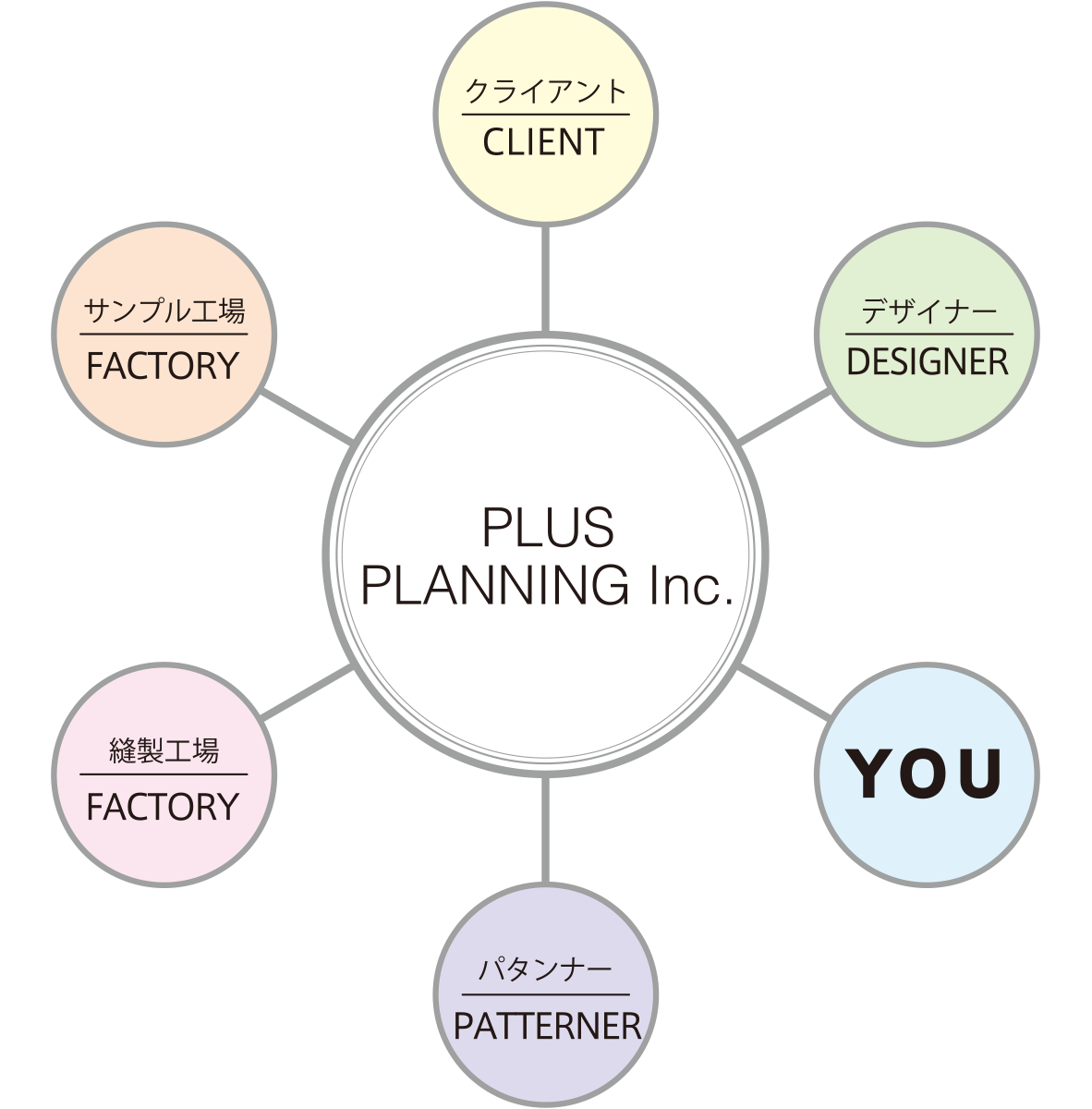 私たちプラスプランニングは、アパレルパターン制作のプロフェッショナルとして、クライアントと共に成長し、ファッション業界全体の発展に寄与していくことを目指しております。